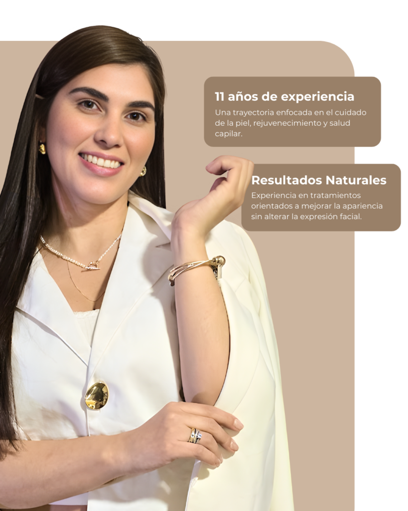 Con 11 años de experiencia es médica en el campo de la medicina estética, la Dra Paula Garzón tiene un enfoque orientado al cuidado natural de la piel y al diseño de protocolos personalizados basados en diagnóstico individual, seguridad y ética profesional.